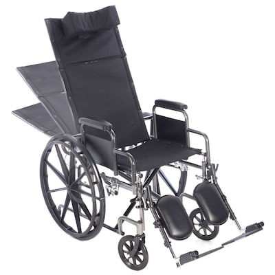 ProHeal Chariot Reclining 18" Wheelchair, Headrest Support w/ Removable Full Arms, 300 lb. Capacity, Black (PH-WCRC18FAELR)