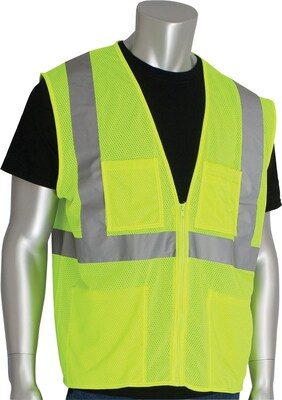 Protective Industrial Products High Visibility Sleeveless Safety Vest, ANSI Class R2, Lime Yellow, 5XL (302-MVGZ4PLY-5X)