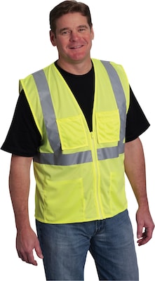 Protective Industrial Products High Visibility Sleeveless Safety Vests, ANSI Class 2, Yellow Mesh, Large (302-MVGZ4PLY-L)