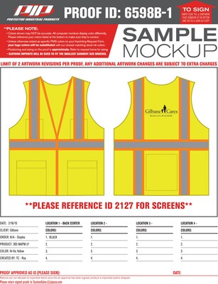 Protective Industrial Surveyor Safety Vest, ANSI/ISEA 107-2015 Class 2, Type R, Zip Front, Lime Yel Mesh, XL, LOGO Gilbane Cares