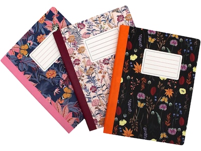 Pukka Pad Bloom Composition Notebooks, 7.5" x 9.7", College Ruled, 70 Sheets, Assorted Colors, 3/Pack (9516-BLM)