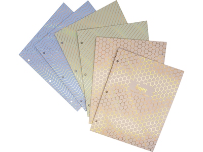 - Each folder features two pockets