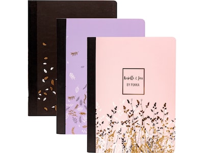 Pukka Pad Rochelle & Jess Composition Notebooks, 7.5" x 9.75", College Ruled, 70 Sheets, Assorted Colors, 3/Pack (9107-ROC)