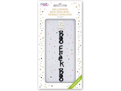Stand out from the crowd with the cute Pukka Party Boo Eeek Boo Halloween garland. Decorate your living space, hallway, or door with this 78.7" long, lightweight, stitched garland. With little effort required, this garland is an easy accessory to add to your setup, and can be used over and over again! The cute skull and "Boo Eeek Boo" design matches with the rest of the brand's Halloween decorations, or can be used alone.