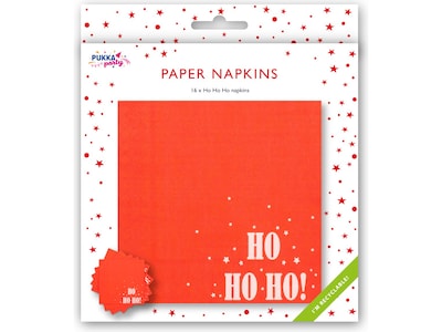 Pukka Party Ho Ho Ho! Christmas Paper Napkins, Red, 16/Pack (PTY555)