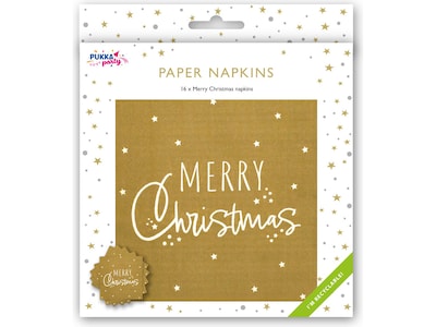 Pukka Party Merry Christmas Paper Napkins, Gold, 16/Pack (PTY561)