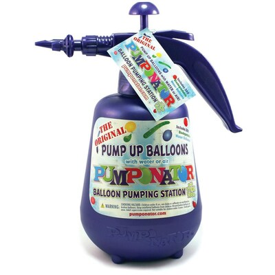 Pumponator® Balloon pumping station includes 500 assorted color balloons with strings for tying and helps to pump up balloons with air or fill.