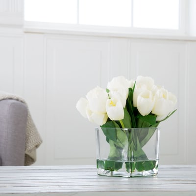 Pure Garden Tulip Floral Arrangement with Glass Vase - Cream
