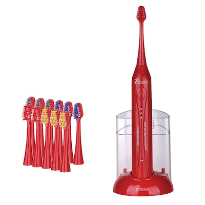 Pursonic® S420 High Power Rechargeable Sonic Toothbrush with 12 Brush Heads/Storage Charger, Red (S420RD)