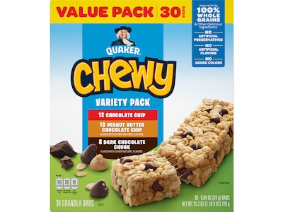 Quaker Chewy Granola Bars Variety Pack, 25.3 oz., 30 Bars/Box (57341)