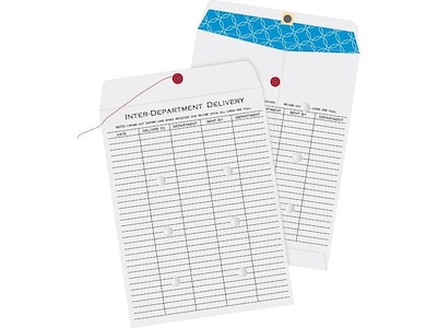 Keep track of reports, contracts, and other documents shared throughout your office with these interdepartmental envelopes. Preprinted forms offer space for names, dates, and departments, while the string-and-button closures keep papers securely tucked inside. With durable construction, these Quality Park interdepartmental envelopes stand up to repeated use.