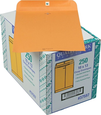 Quality Park Clasp Kraft Catalog Envelope, 10" x 13", Kraft, 250/Box (37597)