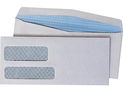 Quality Park Gummed Security Tinted #10 Double Window Envelopes, 4 1/8" x 9 1/2", White, 500/Box (24550)
