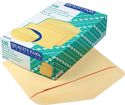 Quality Park Gummed Open Side Document Envelopes, 10" x 15", Cameo Buff, 100/Bx