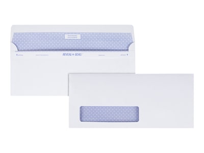 Keep confidential information away from prying eyes with these instant-seal security envelopes. Each one is manufactured with premium 24-pound wove paper, making it ideal for everyday business and personal use, while the bright white coloring delivers a clean, professional look. These Quality Park Reveal-N-Seal single-window envelopes feature a self-seal closure that eliminates the need to moisten the flap or use a pull-off strip.