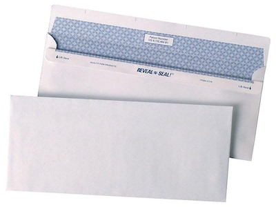 Quality Park Reveal-N-Seal Security Tinted #10 Business Envelopes, 4 1/8" x 9 1/2", White Wove, 500/Box (QUA67218)