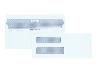Ensure reliable delivery of customer and client mailings with these double-window envelopes. The Reveal-N-Seal closure keeps documents neatly stored inside, while the security tint prevents sensitive information from showing through. Double windows keep both the recipient and sender addresses clearly visible. Crafted from 24-pound white wove stock, these Quality Park Reveal-N-Seal envelopes stand up to frequent handling.