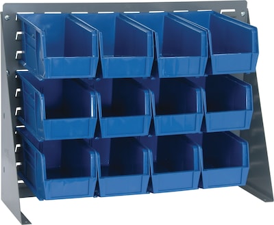 Quantum Storage Systems 27" x 8" x 21" Bench Racks With Bins, Blue, 12/Carton (QBR2721-230-12B)