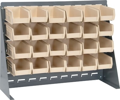 Quantum Storage Systems 27" x 8" x 21" Bench Racks With Bins, Ivory, 24/Carton (QBR2721-220-24I)