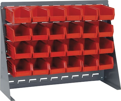 Quantum Storage Systems 27" x 8" x 21" Bench Racks With Bins, Red, 24/Carton (QBR2721-210-24R)