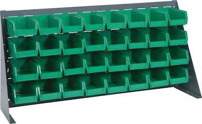 Quantum Storage Systems 36" x 8" x 19" Bench Racks With Bins, Green, 32/Carton (QBR-3619-22032G)