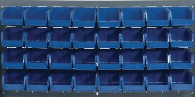 Quantum Storage Systems 36"L x 19"H Louvered Panels With Bins, Blue, 32/Carton (QLP3619-210-32B)