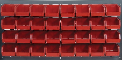 Quantum Storage Systems 36"L x 19"H Louvered Panels With Bins, Red, 32/Carton (QLP3619-210-32R)