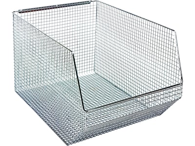 The Quantum Storage Systems innovative wire mesh bin design offers a nickel-chrome finish and a 0.375" x 0.375" grid pattern allowing for complete visibility of the bin's contents. This unique mesh pattern provides a dust- and dirt-free storage environment. The ultra-strong design ensures superior hang capacity perfect for IV fluid storage or anything where hang capacities are vital. This mesh bin has a rear hanger that allows it to hang from any louvered wall panel or rail system. The open hopper design enables easy picking while allowing for visual access to the stored contents.