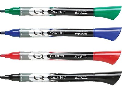 Create fine, smooth lines with these Quartet EnduraGlide dry-erase markers. Four bright colors let you categorize ideas or highlight important concepts, while the fine tips are ideal for writing on smaller whiteboards. Each marker features a translucent barrel so you can keep an eye on ink levels as you write. These Quartet EnduraGlide markers feature nontoxic ink, making them ideal for use in schools.