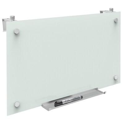 Organize your ideas with this frameless 18 x 30-inch tempered-glass whiteboard. The included mounting hardware lets you attach the board to a wall or hang it from your cubicle in a horizontal or vertical orientation. Post papers directly to the board using the two included rare-earth magnets, and store markers on the attached aluminum accessory tray. This Quartet Infinity dry-erase board resists staining and ghosting to simplify cleaning.