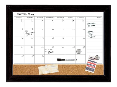 Be prepared for upcoming projects, appointments, and other important events with this magnetic dry-erase/cork calendar board. The corkboard lets you conveniently post bulletins and other documents, while the dry-erase board lets you write, brainstorm, and plan ahead. This Quartet combination calendar board has an espresso frame that holds everything firmly together while offering a sophisticated look.