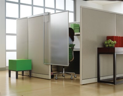 - Partial-length, workstation privacy screen transforms cubicles into an interruption-free work zone