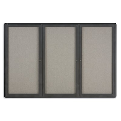 Bring attention to important information with a display of pictures, documents, and more when you use this Quartet Radius 4' x 6' enclosed fabric bulletin board. Each board features durable gray fabric backed by high-density fiberboard that holds pins firmly in place and is enclosed in a sturdy aluminum cabinet with rounded corners and a graphite-finish frame. Three clear, shatter-proof, acrylic front doors lock to maintain visibility while preventing papers from getting lost or damaged, even in high-traffic areas.