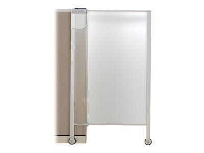 Add a layer of privacy to workstations with this full-length rolling screen featuring translucent, shatter-proof polycarbonate housed in a stable aluminum frame. Two parallel wheels help keep this screen on track and position locks at the top and bottom allow the screen to be positioned at any point along the doorway for customizable privacy. This Quartet privacy screen allows light to pass through, keeping workspaces well lit and uninterrupted, and includes a small whiteboard for notes and messages.