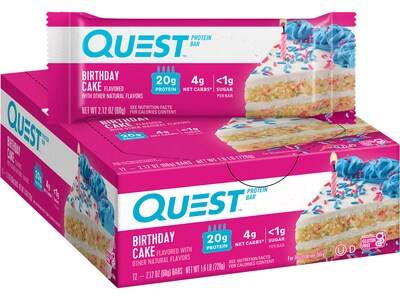 Quest Gluten Free Birthday Cake Protein Bar, 2.12 oz., 12 Bars/Box (QPBBDC12)