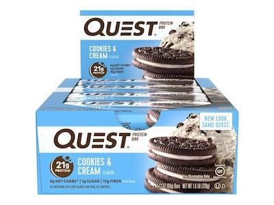 Feed your sweet tooth with these Quest Nutrition cookies and cream protein bars.
