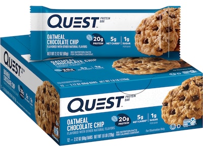 Quest Gluten Free Oatmeal Chocolate Chip Protein Bar, 2.12 oz., 12 Bars/Box (QPBOCC12)