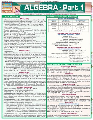 - Providing challenges at all levels of education, these QuickStudy guides cover the principles for basic algebra, intermediate algebra and college algebra courses