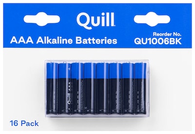 - This Value pack of Quill Batteries contains 16 durable 1.5V Alkaline AAA Batteries that can be used universally or any AAA battery needs.
