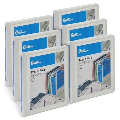 Quill Brand® 1/2 inch, Round Ring, View Binder, White, 6/Pack (72205WE)
