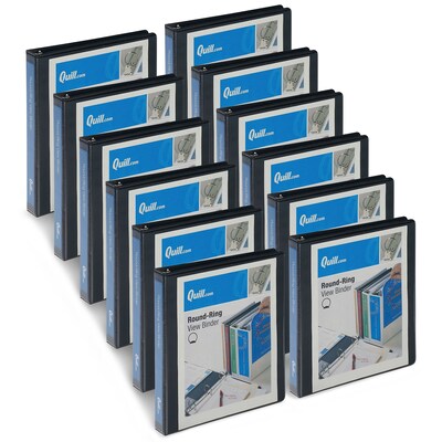 Quill Brand® 1 inch, Round Ring, View Binder, Black, 12/Pack (7221BK)