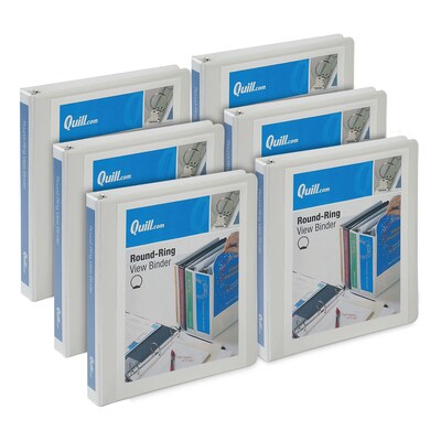 Quill Brand® 1 inch Round Ring, View Binder, White, 6/Pack (7221WE)