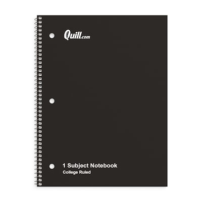 Stay on top of projects with this 1-subject notebook. The college-ruled sheets provide space for more thoughts or drawings, while the spiral spine design keeps papers from snagging when you turn them. The notebook contains 70 sheets, providing an ample supply of writing space. This Quill Brand 8 x 10.5-inch black 1-subject notebook comes in a pack of three to stock up your desk or cabinet.