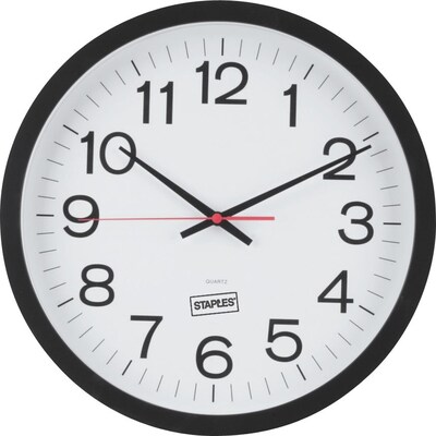 Keep track of time with this sturdy Staples 14-inch quartz black wall clock.