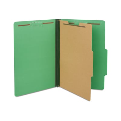 Quill Brand® 2/5-Cut Tab Pressboard Classification File Folders, 1-Partition, 4-Fasteners, Legal, Green, 15/Box (747034)