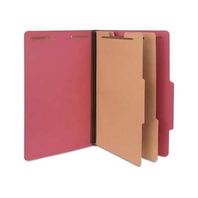 Quill Brand® 2/5-Cut Tab Pressboard Classification File Folders, 2-Partitions, 6-Fasteners, Legal, Red, 15/Box (739030)