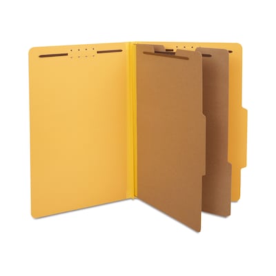 Quill Brand® 2/5-Cut Tab Pressboard Classification File Folders, 2-Partitions, 6-Fasteners, Legal, Yellow 15/Box (739038)