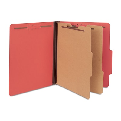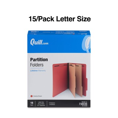 Quill Brand® 2/5-Cut Tab Pressboard Classification File Folders, 2-Partitions, 6-Fasteners, Letter, Brown, 15/Box (738036)