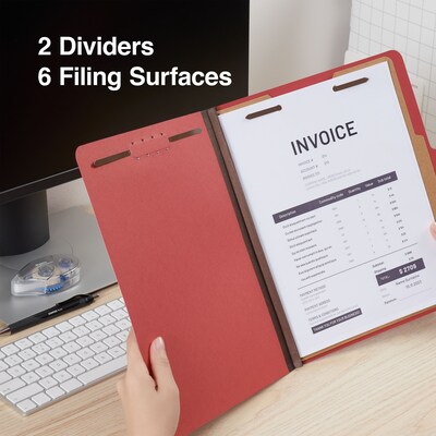 Quill Brand® 2/5-Cut Tab Pressboard Classification File Folders, 2-Partitions, 6-Fasteners, Letter, Red, 15/Box (73803)