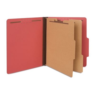 Quill Brand® 2/5-Cut Tab Pressboard Classification File Folders, 2-Partitions, 6-Fasteners, Letter, Red, 15/Box (73803)